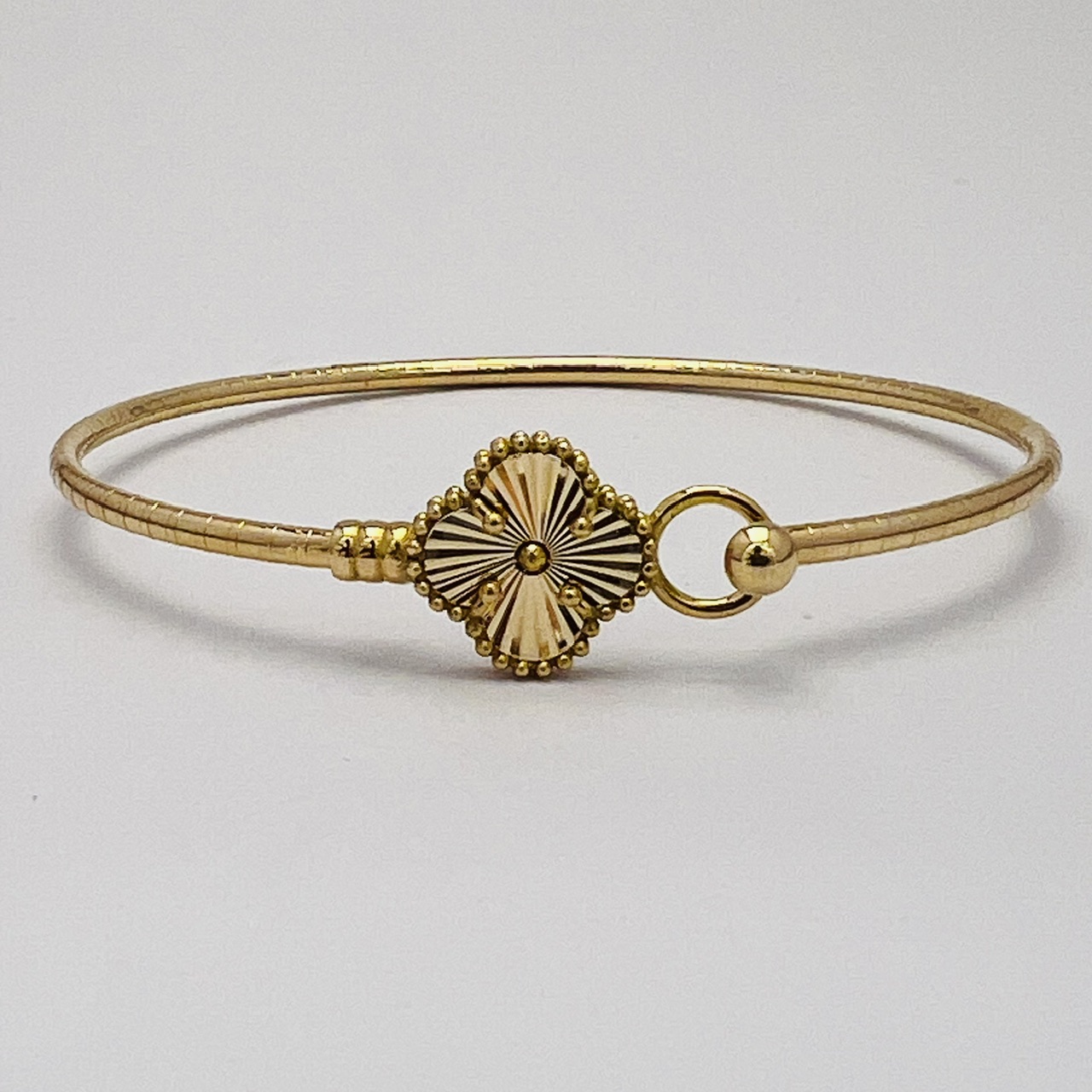 دستبند بنگل ونکلیف طلای زرد طراحی جدید مقاوم و با دوام شیک مناسب استفاده روزانه کلیه محصولات دارای کد750(18عیار) و کد شناسه سازنده (T) میباشند موجود در شعبه سینماسعدی ارسال رایگان بیش از ۳۰ سال سابقه و دارای ۱۰ شعبه فعال در سطح شیراز ضامن خرید امن شما میباشد. جهت کسب اطلاعات بیشتر با شماره زیر 09172023130 تماس حاصل فرمایید