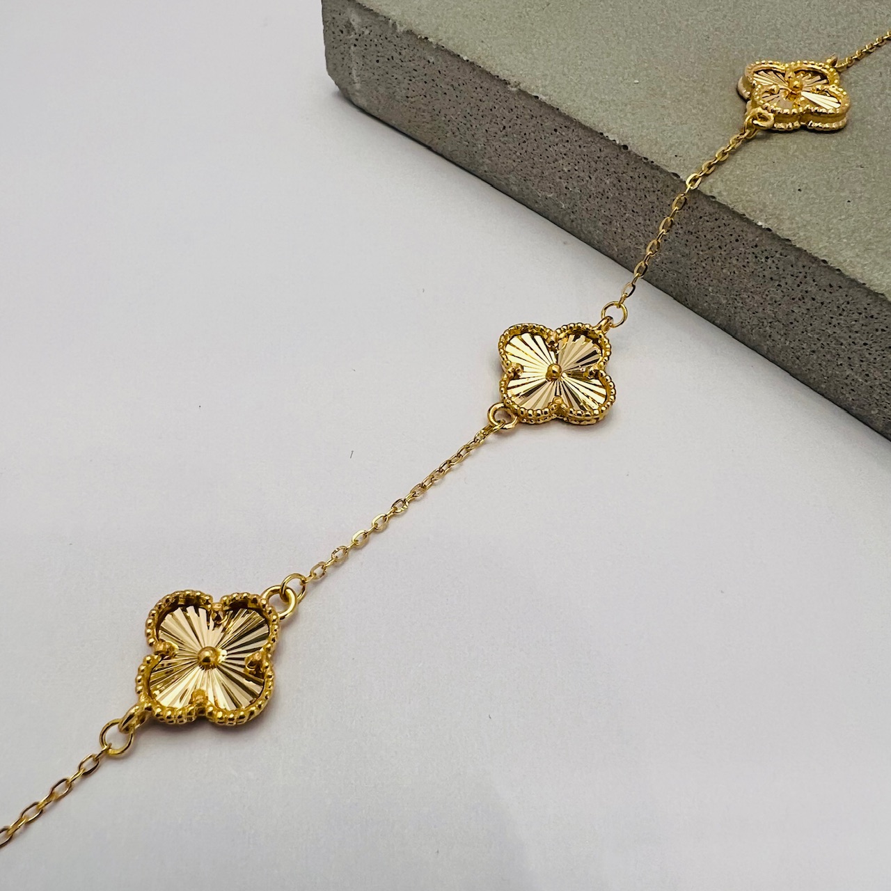 دستبند ۳ گل ونکلیف طلای زرد نمای بسیار زیبا خاص و منحصر بفرد کلیه محصولات دارای کد750(18عیار) و کد شناسه سازنده (T) میباشند موجود در شعبه سینماسعدی ارسال رایگان بیش از ۳۰ سال سابقه و دارای ۱۰ شعبه فعال در سطح شیراز ضامن خرید امن شما میباشد. جهت کسب اطلاعات بیشتر با شماره زیر 09172023130 تماس حاصل فرمایید