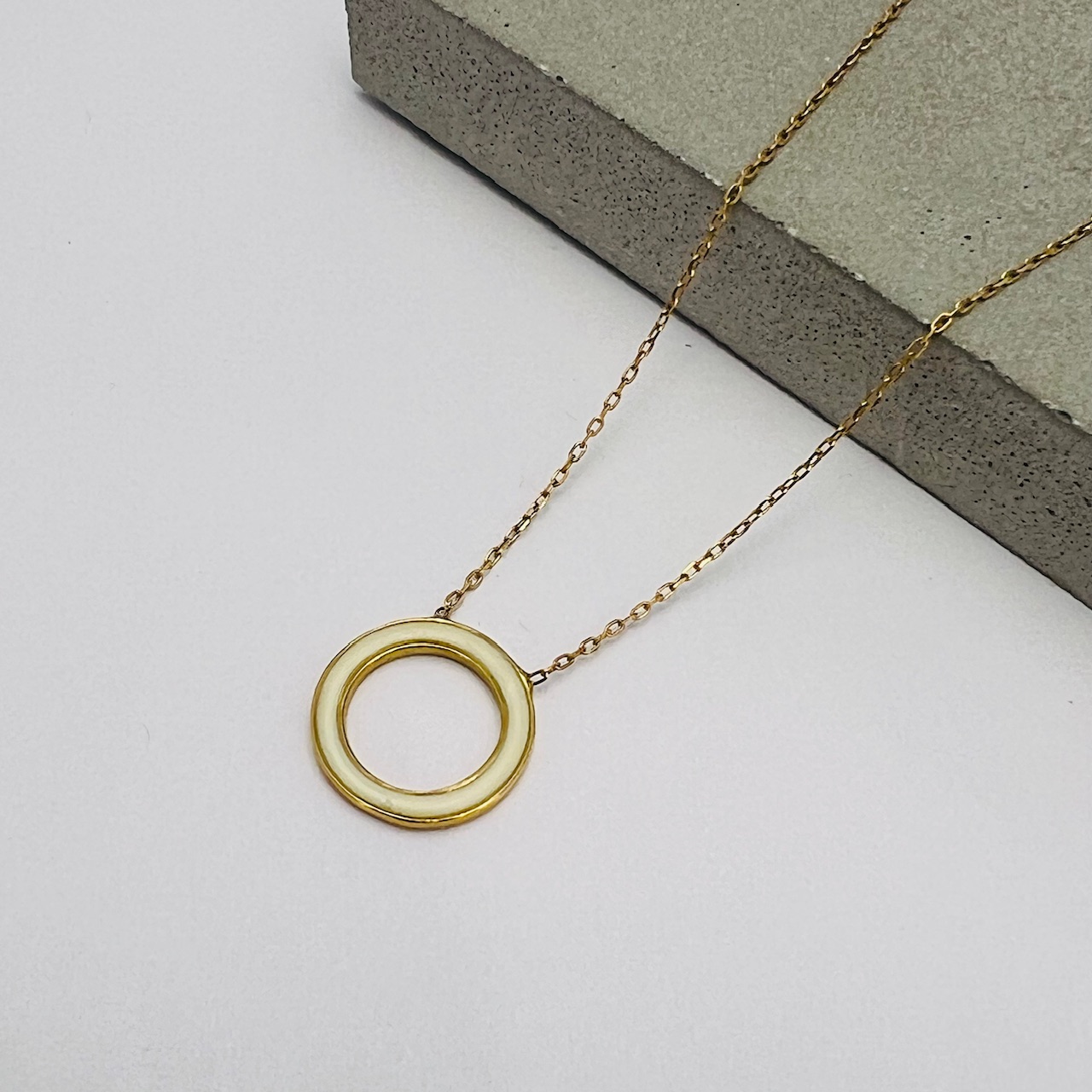 گردبند طرح دونات طلای زرد مینا کاری شده وزن مینا کسر شده مینیمال و زیبا کلیه محصولات دارای کد750(18عیار) و کد شناسه سازنده (T) میباشند موجود در شعبه سینماسعدی ارسال رایگان بیش از ۳۰ سال سابقه و دارای ۱۰ شعبه فعال در سطح شیراز ضامن خرید امن شما میباشد. جهت کسب اطلاعات بیشتر با شماره زیر 09172023130 تماس حاصل فرمایید